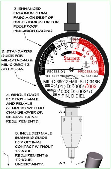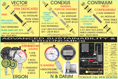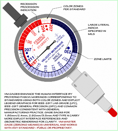The notion of sustainability as a function of modularity also extends to Velocity's other product line: microwave connector gages. There is natural gravity in the engineering sciences that tends to button systems up even when there's no obvious benefit. An obvious counterpoint to this is Velocity's line of connector gages that are ergonomically friendly and open or modular in their architecture. This means - like our test cable assemblies - that decomposition is straightforward. What's the big deal in that? Cost. An easily decomposed system is easier to maintain, cheaper to fix, and cheaper to calibrate in any ISO17025 accredited lab that does dial and digital indicator calibration.